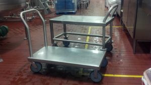 Sterling’s Utility Carts are constructed from 304 Stainless Steel materials and designed to be easily cleaned for sanitary environments, such as food and pharmaceutical plants. With a capacity of 2000 lbs per shelf, these carts utilize an ergonomically superior set of casters that have been proven to reduce the strain on the users. There are 3 standard styles to fit your needs, with a 34″ single shelf, 12″ single shelf, and a 34″/12″ dual shelf option. Each of these configurations have a 24″ x 48″ usable shelf area. The carts are available in both polished and bead blasted options to fit the style or level of cleanliness your plant requires.