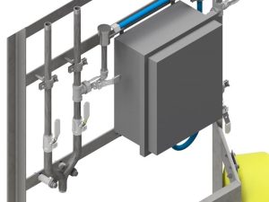 Sterling’s line of Utility stations provides a single location for all things washdown for a portion of your plant. Options include a simple hose station with hot and cold water supplied to a single hose, as well as the Combo station which features the same hot and cold water supply, and additionally a Foamer unit, foaming hose, and sanitization hose. These stations can be anchored to the floor or wall mounted. Standard material is 304 Stainless Steel with a bead blasted finish. The premium panel mounted option features a retractable water hose, as well as chemical bottle mounts for the